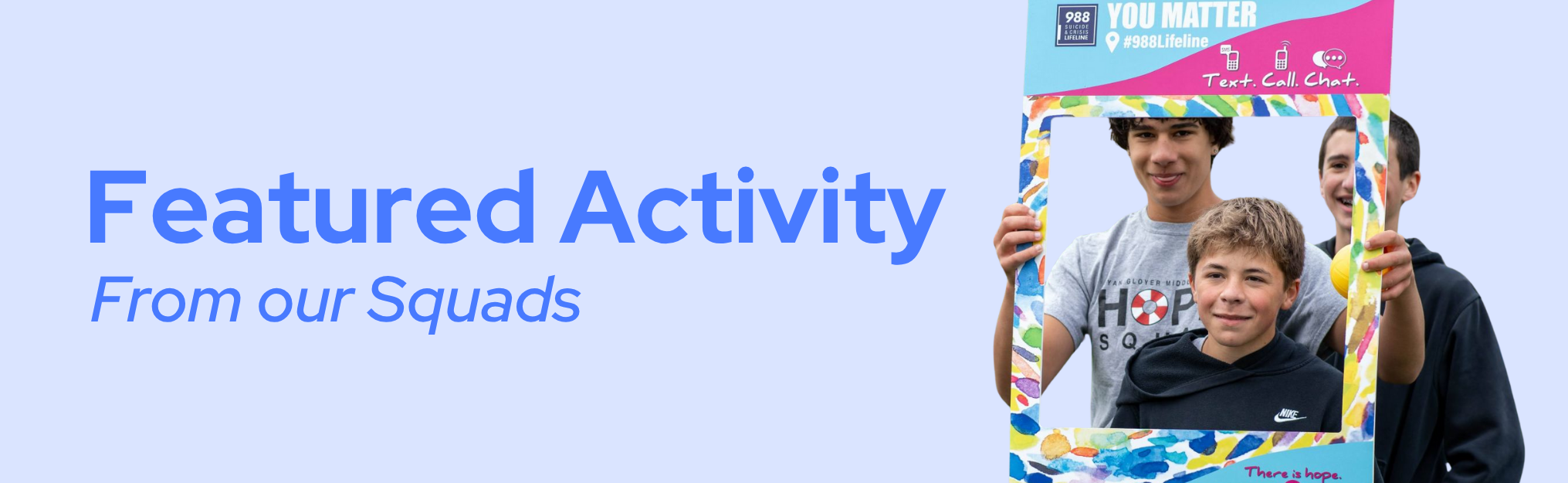 Hey Advisors! We would love your help sharing this newsletter with your student Members to inspire engagement and connection throughout your school community. You can forward this email or click 'View in Browser' in the footer and share the link. Thank you for being a part of Hope Squad and for all you do. 👏🏼 | |